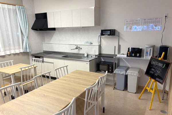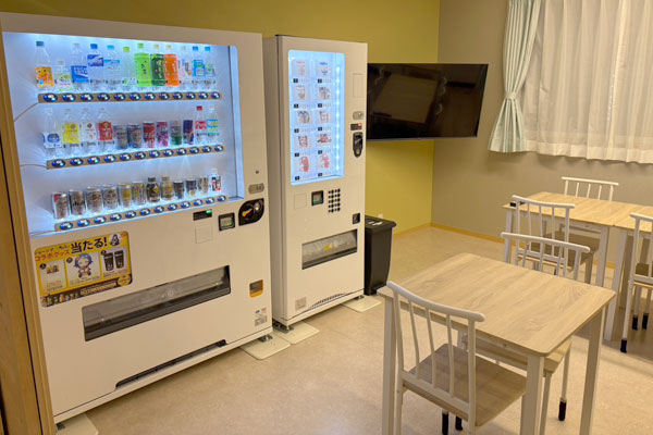 共用スペースには自動販売機各種、フリードリンクコーナーがあります。
